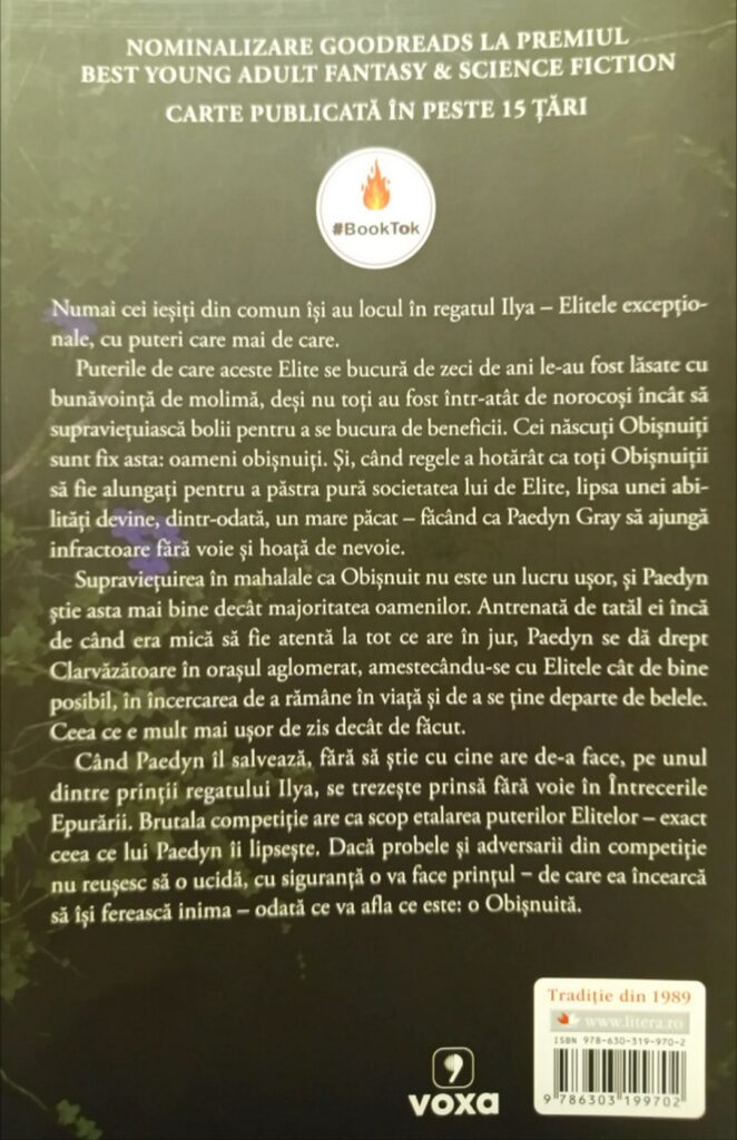 Am citit o carte mult lăudată în ultimă vreme, acumulând deja o sumă de recenzii bune, pe care editura le publică cu interes, și am dorit să mă conving dacă a meritat să fie nominalizată la Premiul Best Young Adult Fantasy & Science Fiction. Sunt 559 de pagini de roman, prima parte dintr-o serie de cărți publicate în 15 țări, apărută la noi la Editura Litera, ale scriitoarei Lauren Roberts. Autoarea trăiește în Michigan, SUA, alături de familia sa și este obișnuită cu iernile adevărate, gropile din asfalt sau activitățile pe apa unui lac. Altfel, ea are hobby-uri domestice, ca ale unei bunicuțe, cărți de colorat, tricotat, laser tag, jocuri de cuvinte. Scrisul s-a putut adăuga și el…