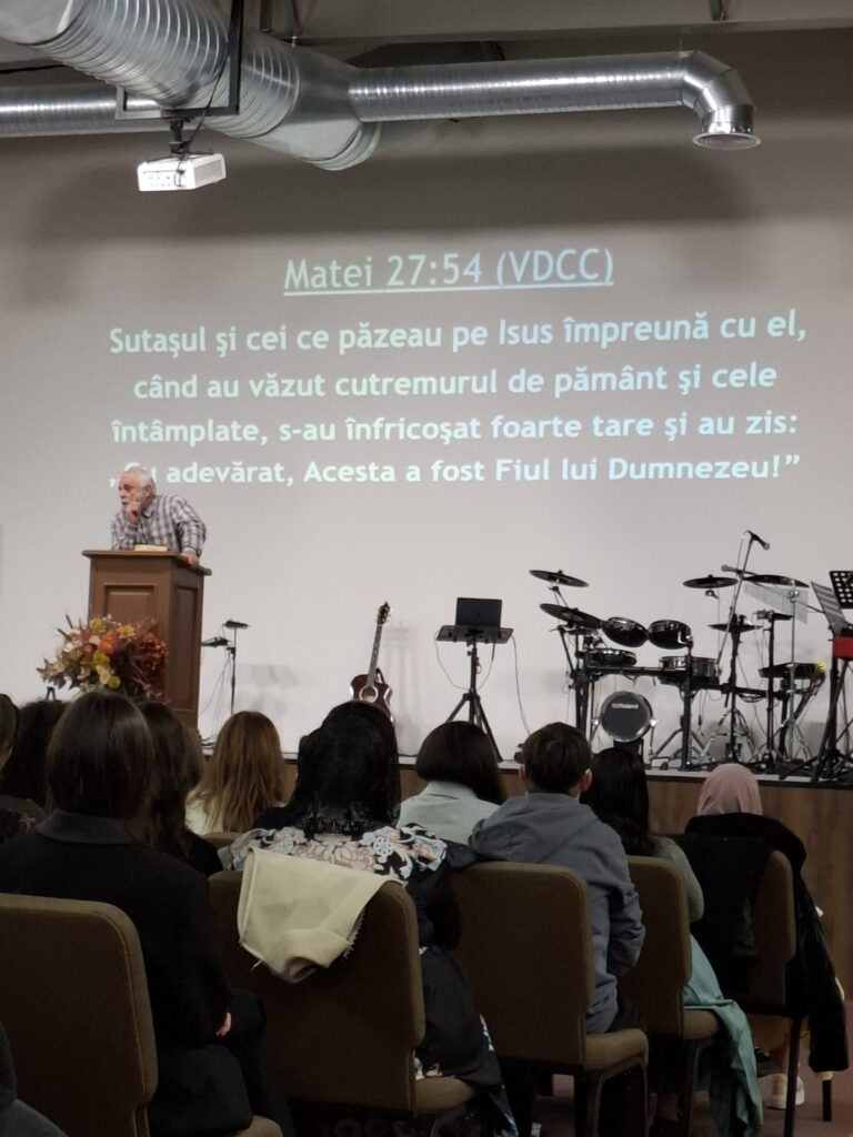 Încă de la început am aflat că în sală erau și oameni veniți din Suceava, Timișoara, Beiuș. Un subiect aparte a fost cel al botezului, pentru care comunitatea se pregătea, spunând că dacă la alte religii copiii sunt botezați de mici, aici se botează doar omul matur, perfect conștient de ceea ce face. Cu mult umor, pastorul a relatat cum la începutul perioadei de slujire în cultul penticostal, mergea cu bicicleta la biserică și un vecin îl înjura întotdeauna. Când acestuia i s-a apropiat sfârșitul, a chemat totuși pe pastorul cel bătrân ca să-l boteze. Se auzeau din stradă strigătele lui când prietenii îl băgau în vană pentru a împlini ritualul botezului. Morala era aceea că un copil nu are cum să se împotrivească, când nașul său se leapădă de Satana…