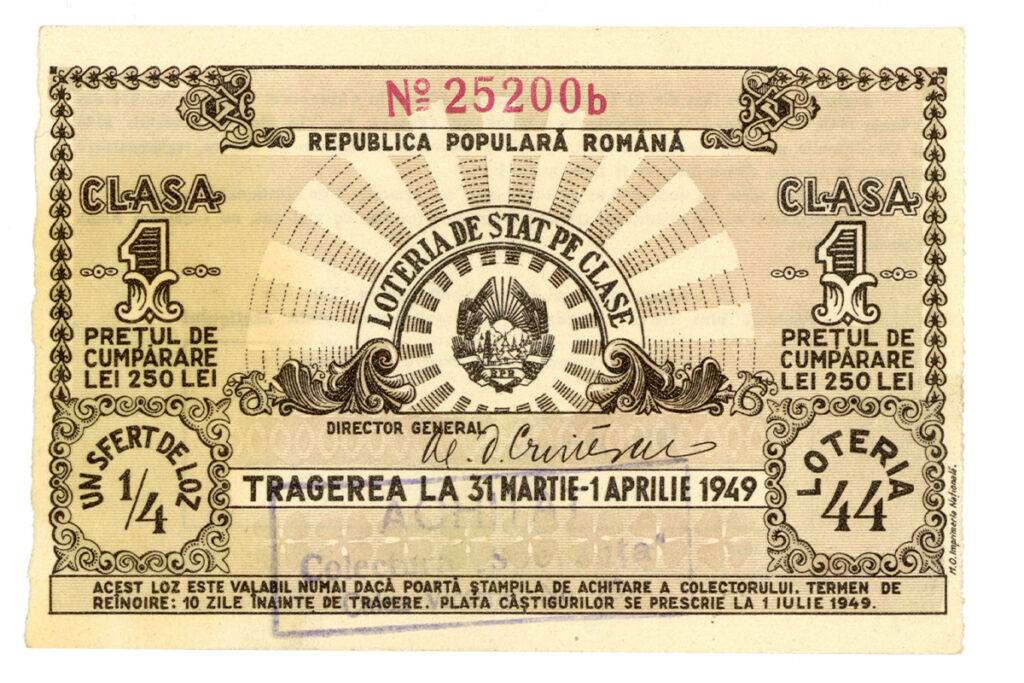 Istoria loteriei românești a fost un subiect puțin studiat, de aceea, prin intermediul proiectului și al catalogului de expoziție, am urmărit prezentarea sintetică a istoriei moderne și contemporane a loteriilor din spațiul românesc, pornind de la loteriile din Țările Românești și ajungând la Loteria Republicii Socialiste România.