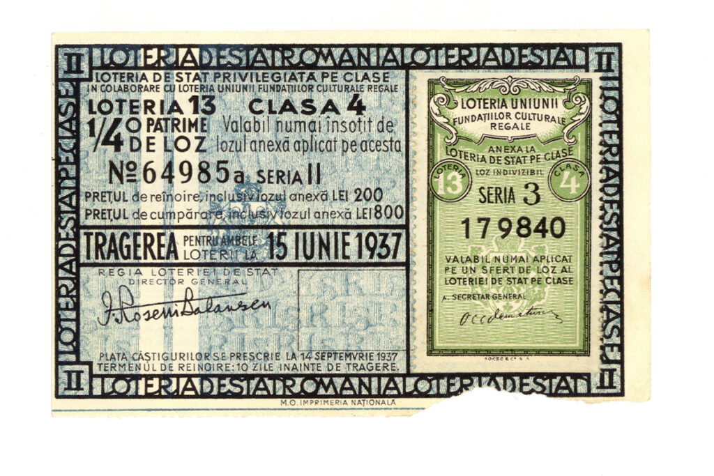 Volumul „Lumea loteriei românești: de la afacere la binefacere (1837-1989)”, ce însumează 370 de pagini, prezintă istoria loteriilor de stat care începe cu bilete de la Loteria privilegiată pe clase a Regatului Român (1913-1916) și de la cea de-a doua Loterie de Stat pe clase din perioada regalității (1932-1947), și continuă cu biletele Loteriei de Stat pe clase a Republicii Populare Române (1948-1949), ale Loteriei Republicii Populare Române (1948-1965) și se încheie cu cele ale Loteriei Republicii Socialiste România (1965-1989). Un capitol aparte este dedicat loteriilor străine care au circulat pe teritoriile românești.