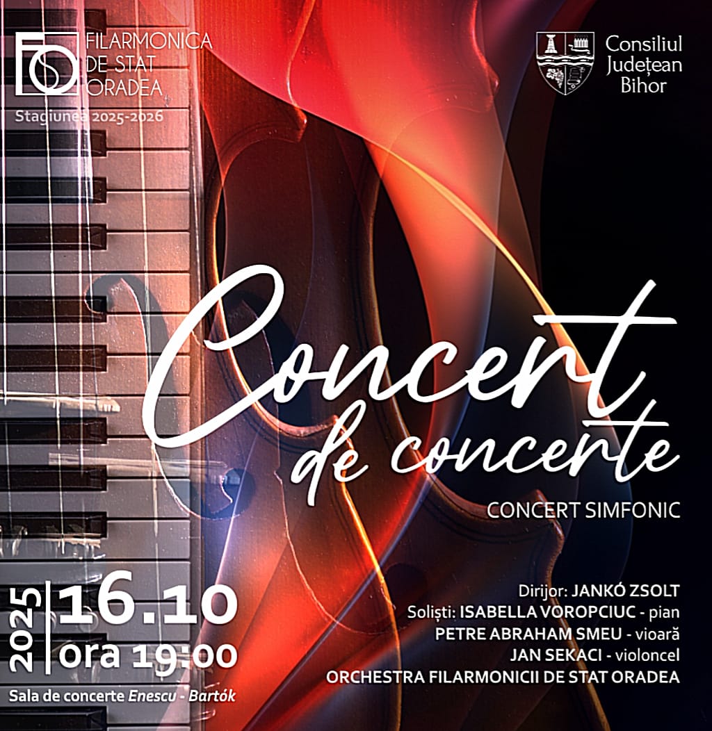 Joi, 16 octombrie 2025, ora 19:00, Filarmonica de Stat Oradea, Sala de concerte „Enescu – Bartók”:CONCERT SIMFONICConcert de concerteDirijor: Jankó ZsoltSoliști: Izabela Voropciuc – pianPetre […]