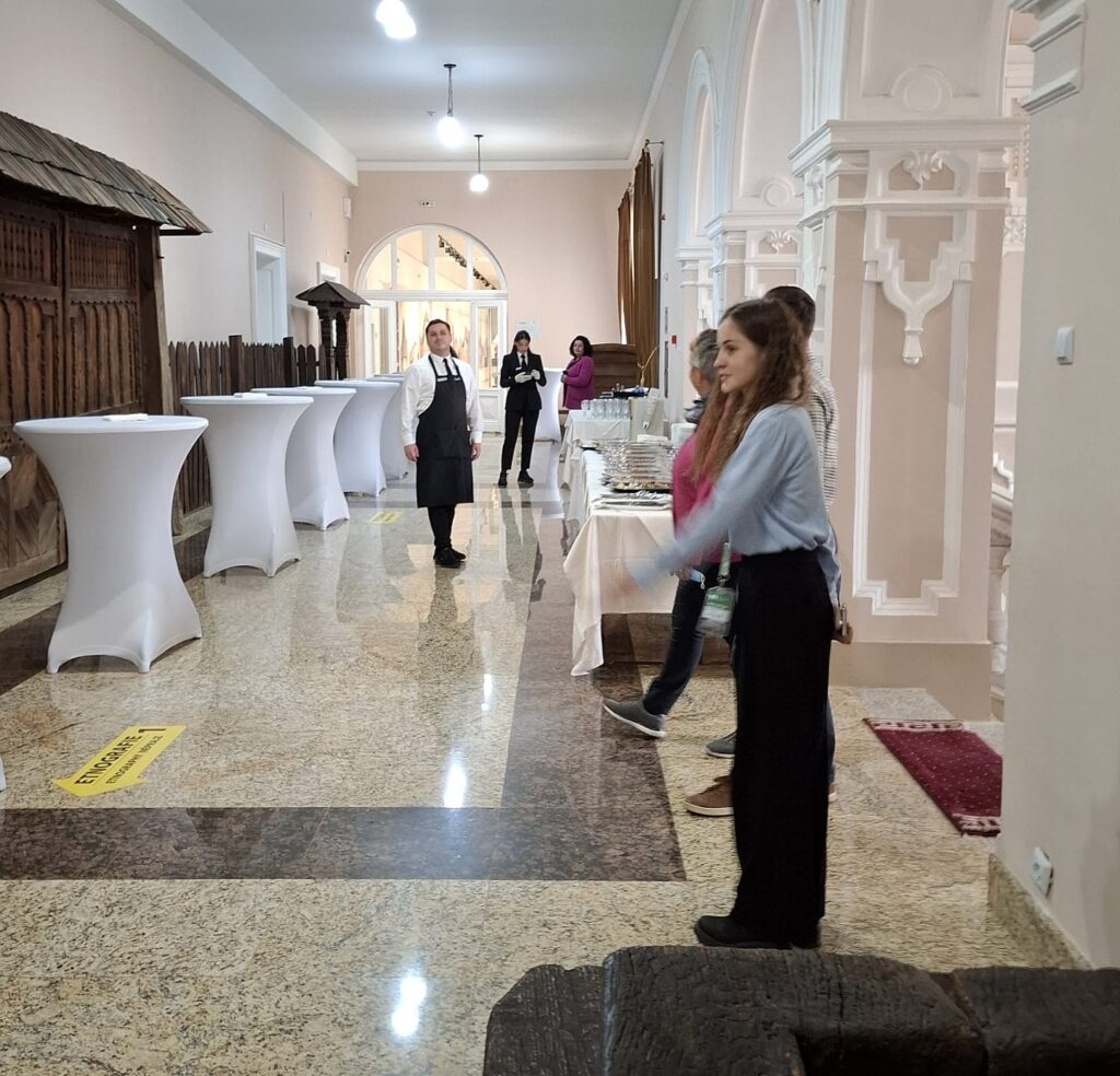 Vernisajul s-a încheiat, ca la casele mari, cu o gustare, dar și cu flori primite de artistă. Vă îndemn să faceți un efort să vedeți și voi cum se asortează designul și ce rezultat a avut proiectul alăturării muncii a doi creatori români.