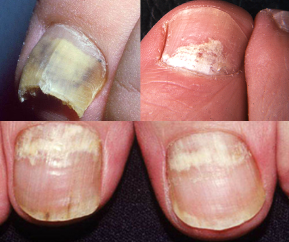 Nu-ți dai seama printr-o mâncărime, cum se anunță de obicei ciuperca de piele, ci prin schimbarea culorii unghiei pe o mică porțiune, care apare de obicei la un colț al ei. Cea mai atacată unghie pare a fi cea de la degetul mare, care are o suprafață dublă față de suratele ei de la celelalte degete.