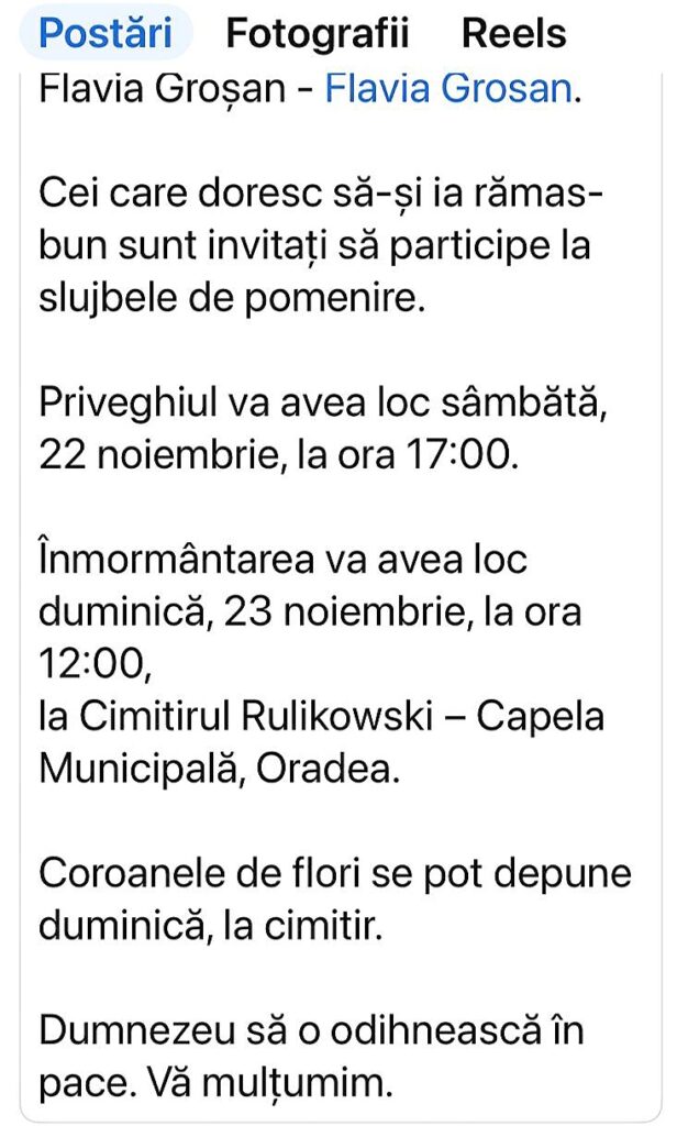 Ea a mai adăugat: „Cu profundă durere și imensă tristețe am aflat despre trecerea la cele veșnice a doctoriței Flavia Groșan, un om de o noblețe sufletească rară, un profesionist desăvârșit și un apărător neînfricat al adevărului și al drepturilor fundamentale ale fiecărui cetățean. Flavia Groșan nu a fost doar medic. A fost un simbol al demnității profesionale, al curajului de a spune nu unui sistem corupt și de a apăra viața, chiar și atunci când întreaga lume părea să fi înnebunit sub teroarea fricii.