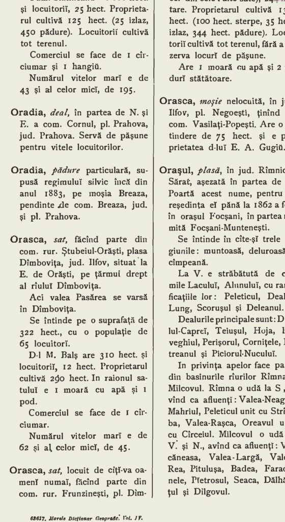 Cu toate astea, numele „Oradia” este de găsit în vechiul regat, chiar în două locuri. Amândouă sunt în județul Prahova, unul fiind un deal cu pășune, în timp ce celălalt este o pădure particulară, cum se poate citi pe pagina 595: